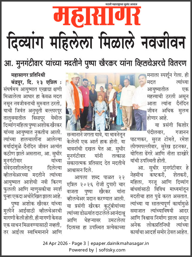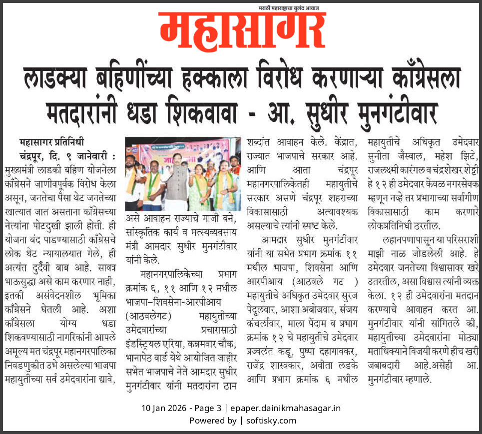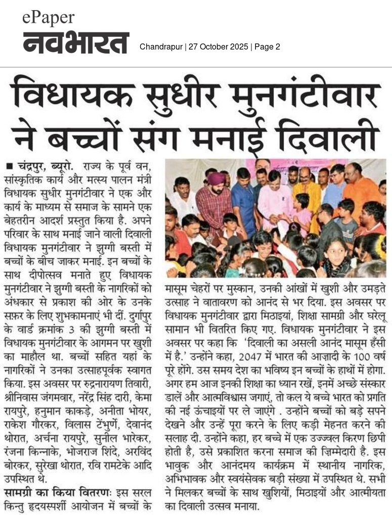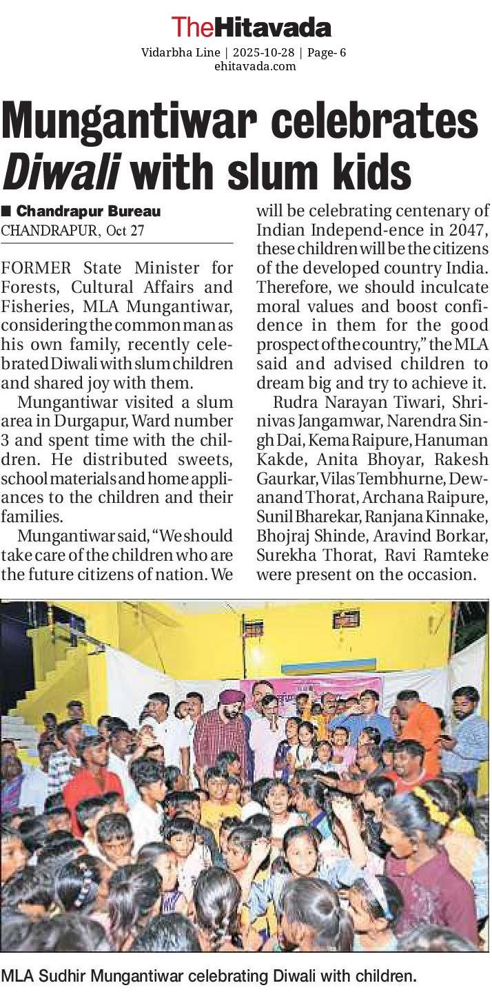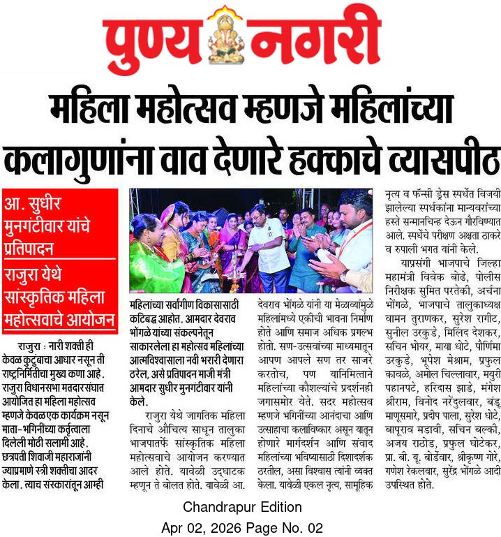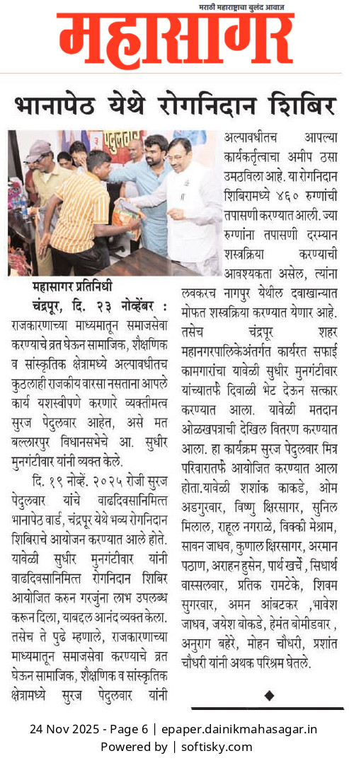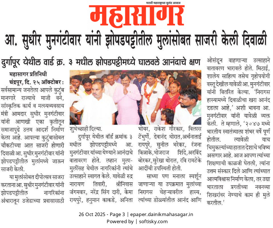 “भाग्यश्री”, गोलबाजार वॉर्ड, कस्तुरबा रोड, गिरनार चौक, चंद्रपूर – ४४२४०२