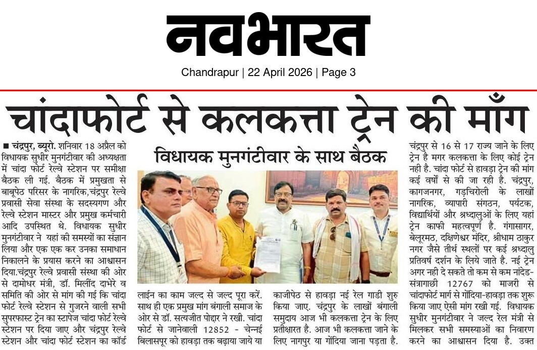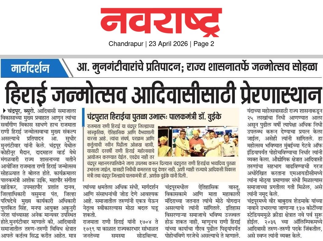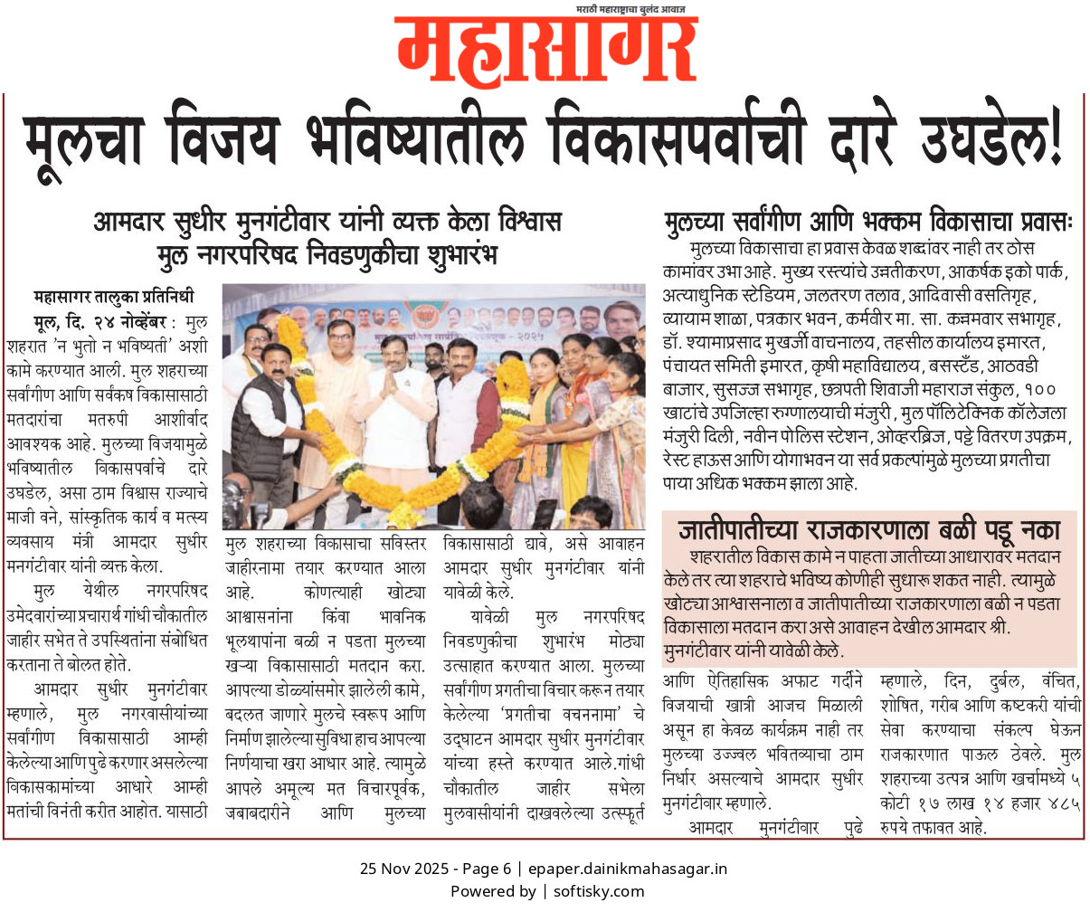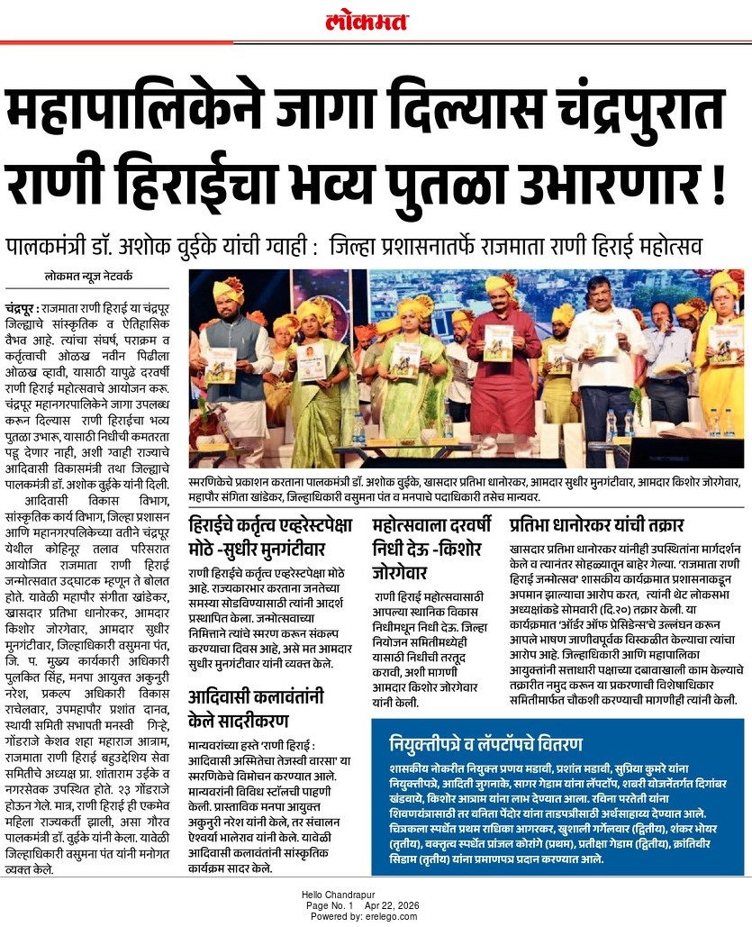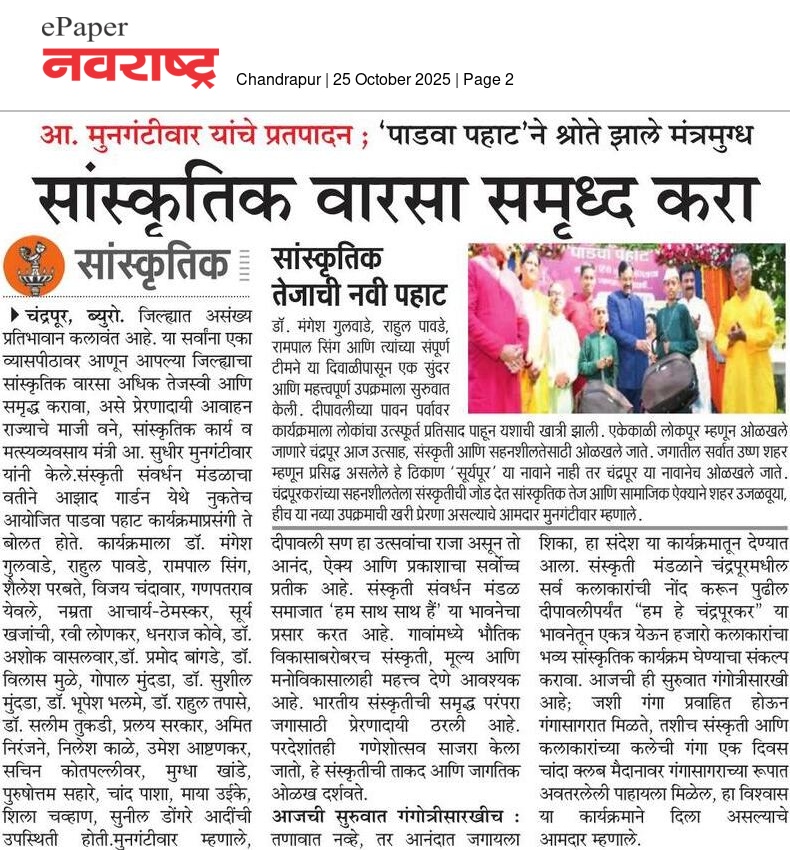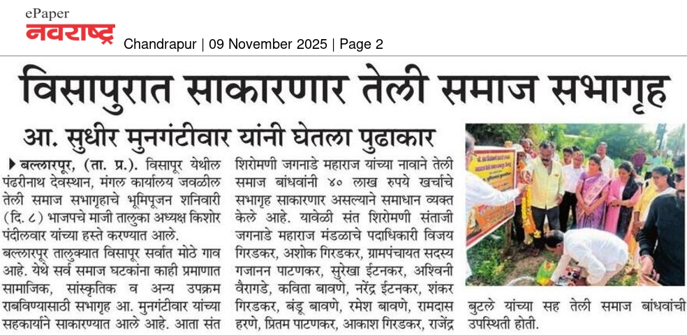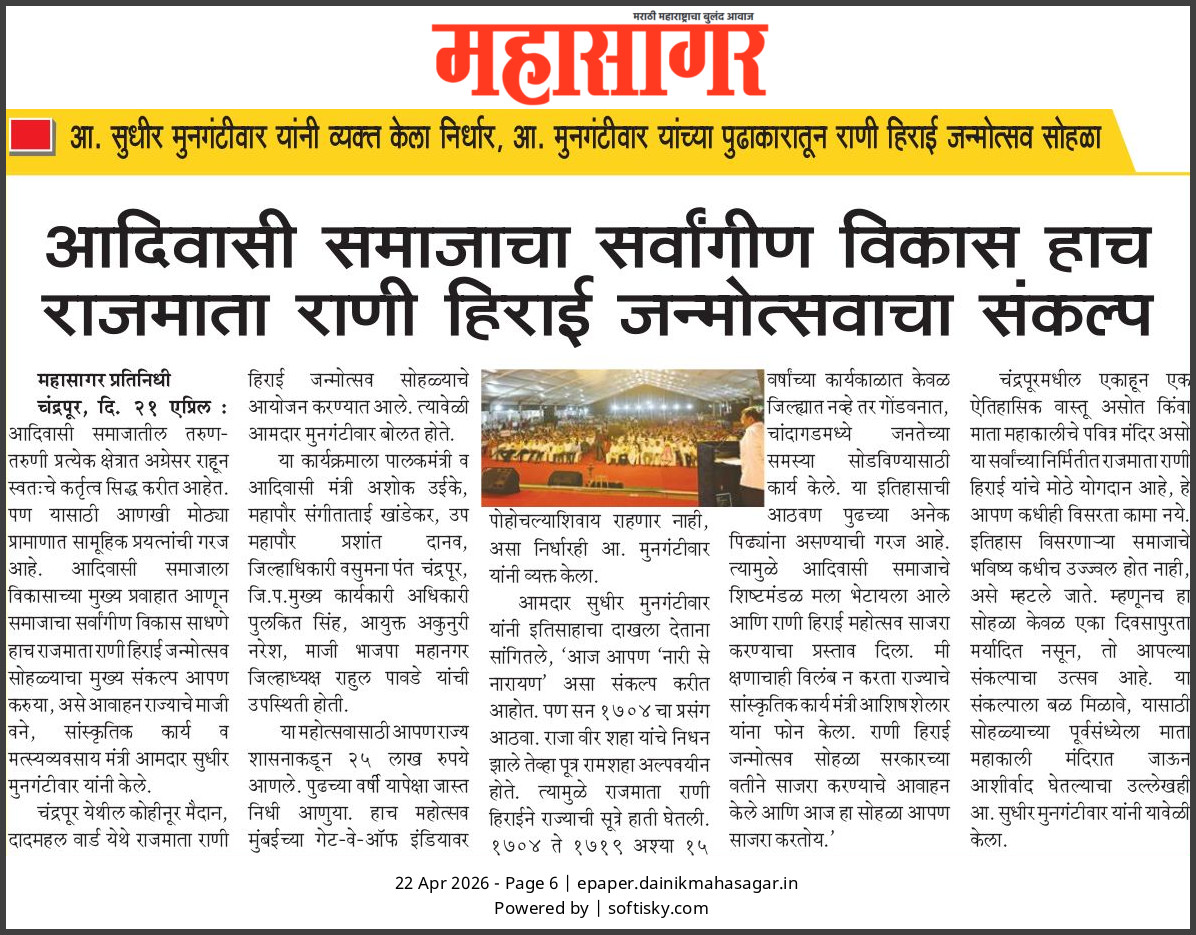 “भाग्यश्री”, गोलबाजार वॉर्ड, कस्तुरबा रोड, गिरनार चौक, चंद्रपूर – ४४२४०२