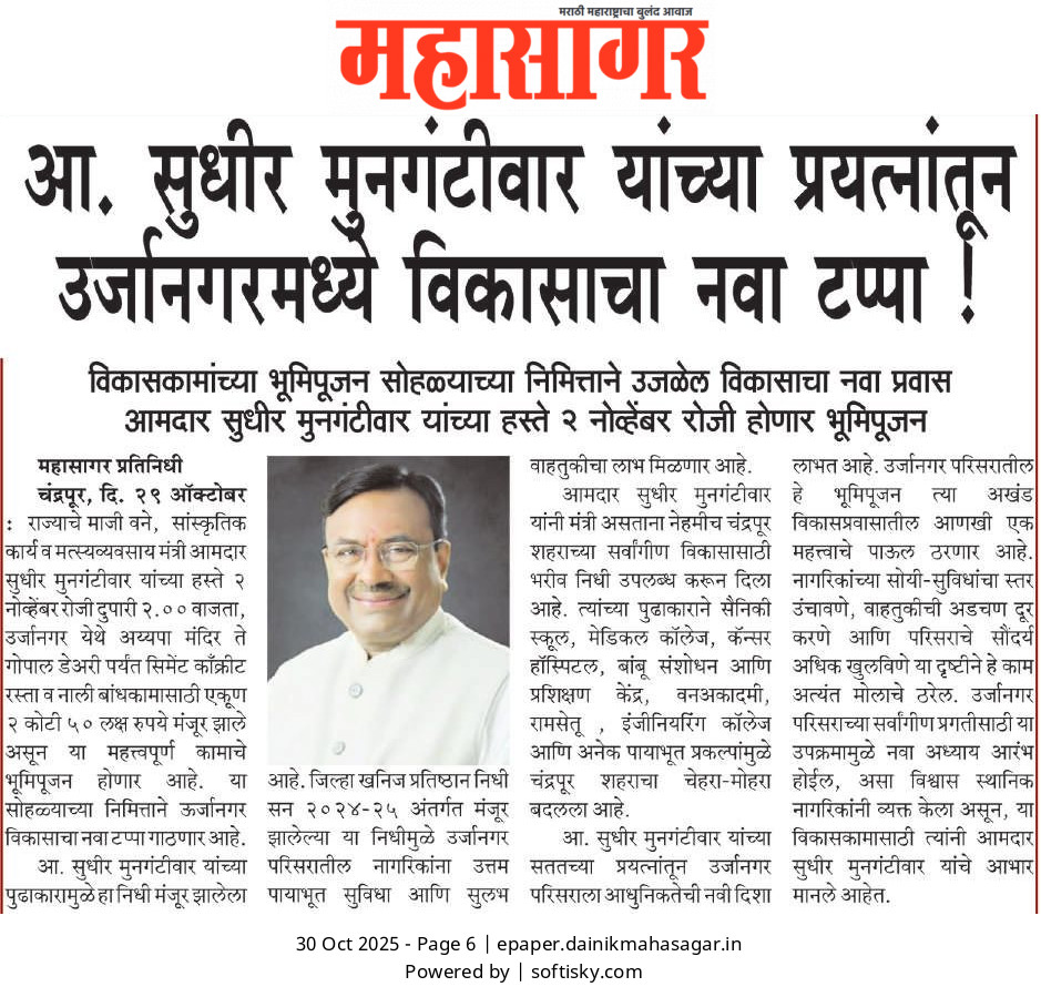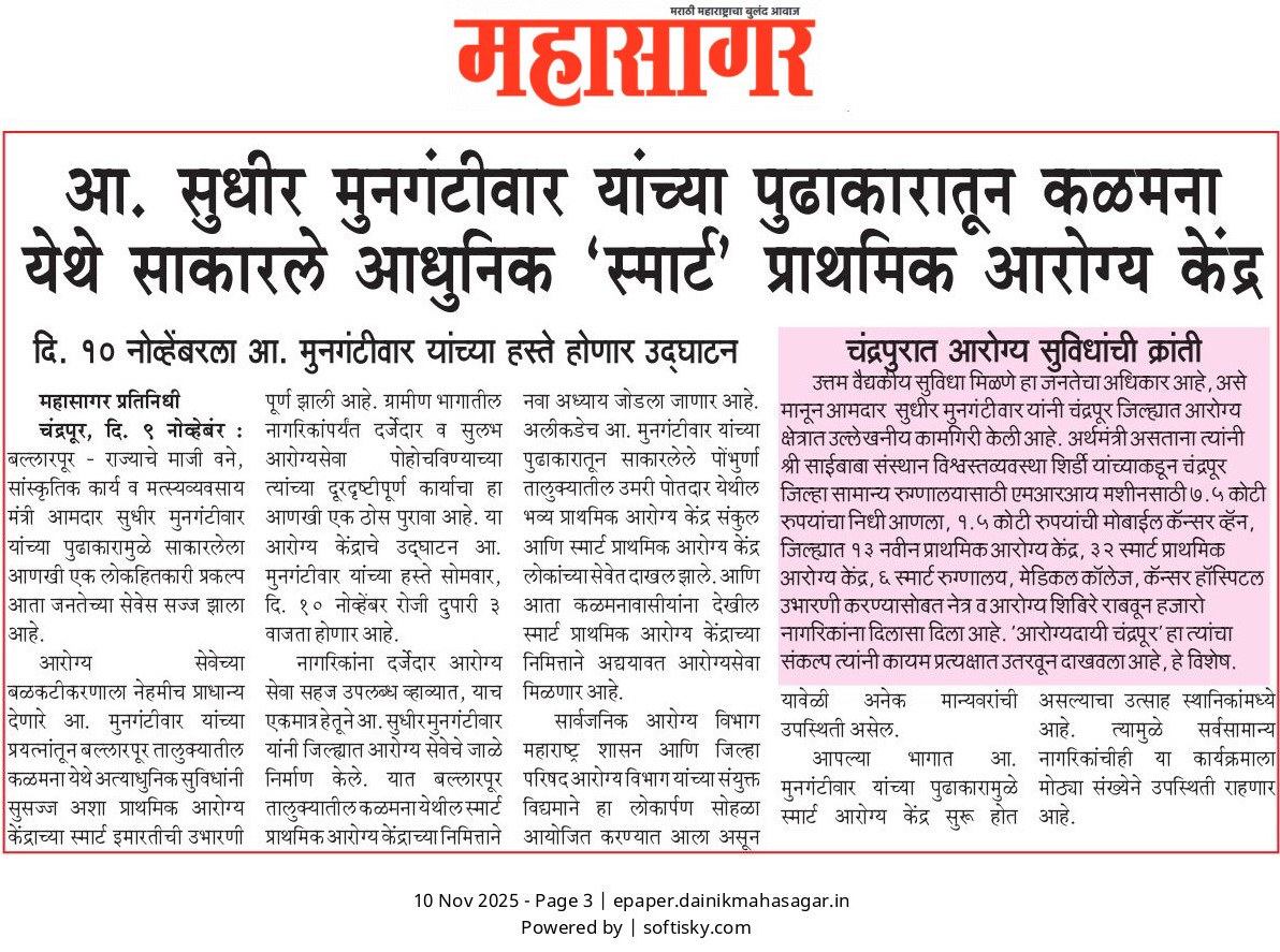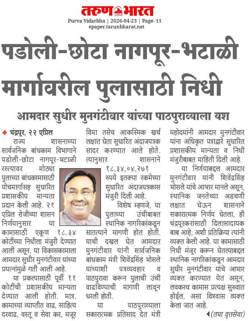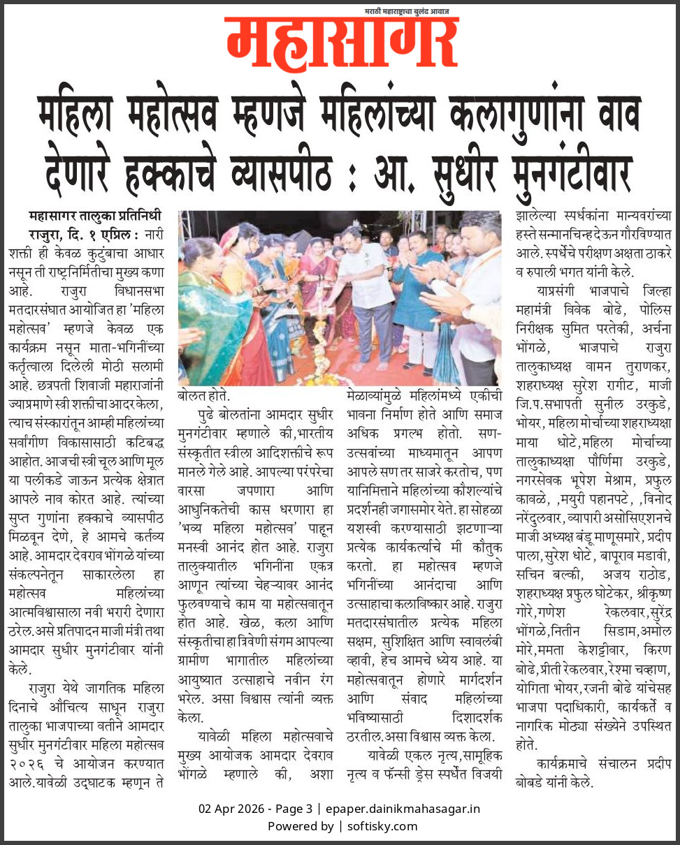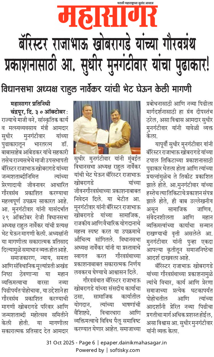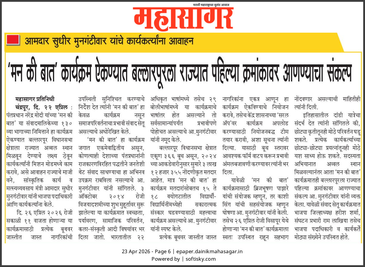 “भाग्यश्री”, गोलबाजार वॉर्ड, कस्तुरबा रोड, गिरनार चौक, चंद्रपूर – ४४२४०२