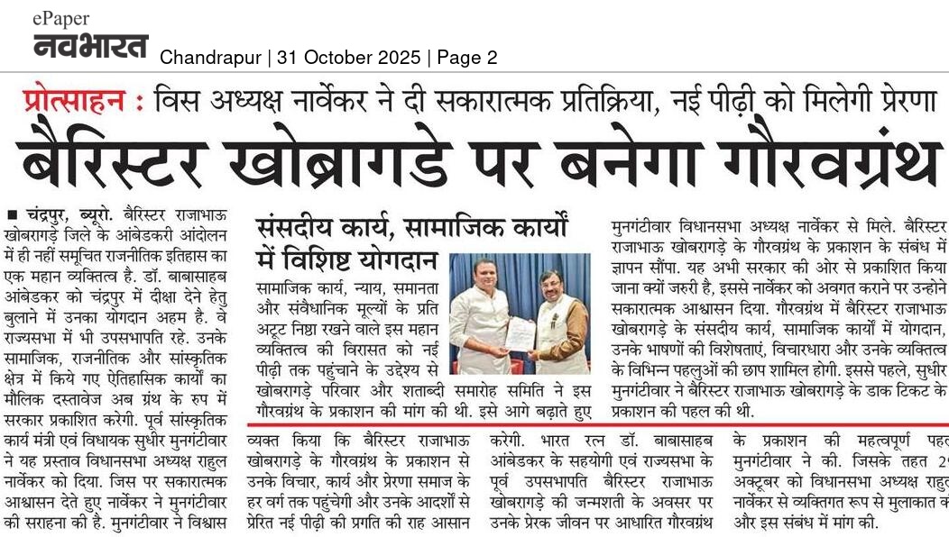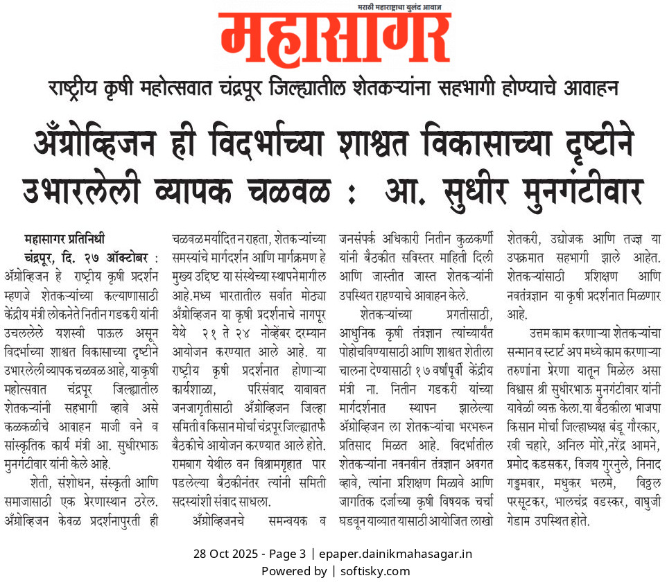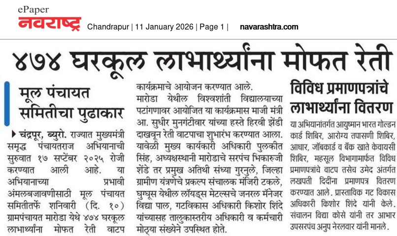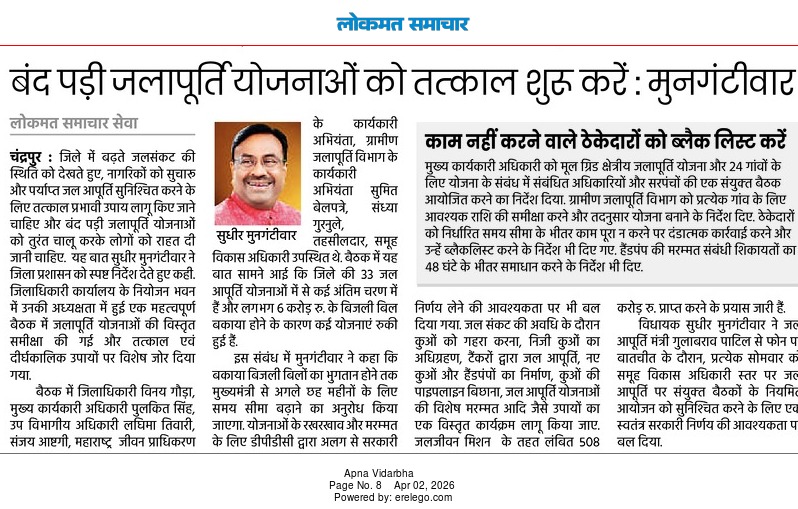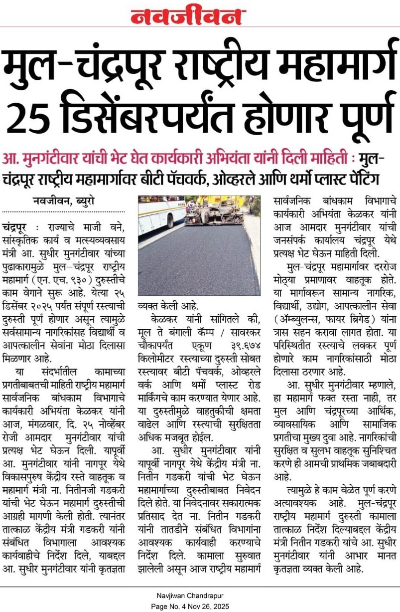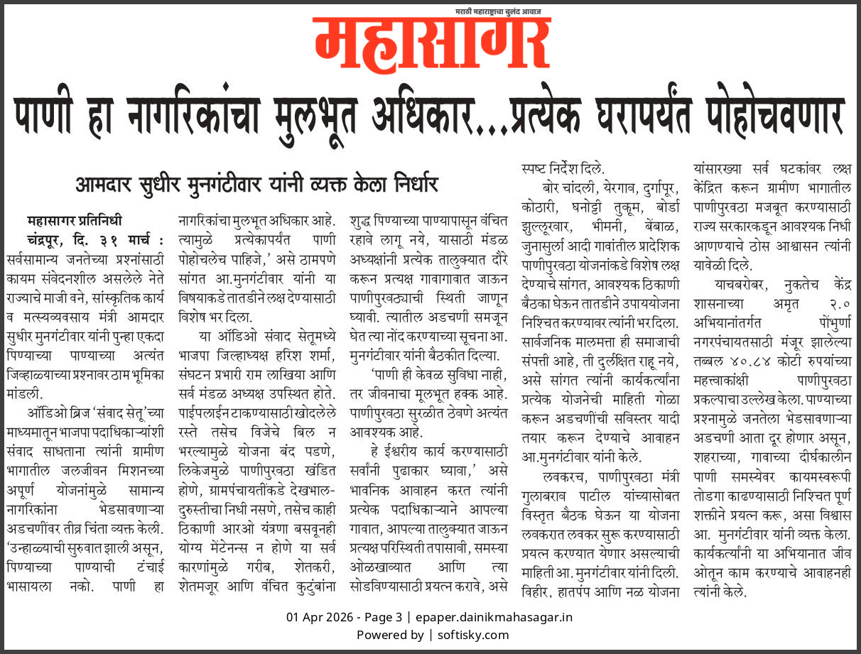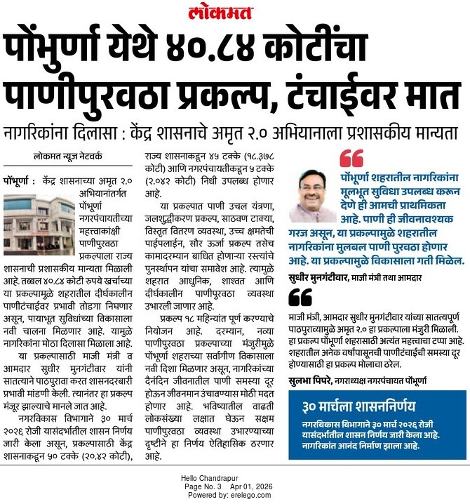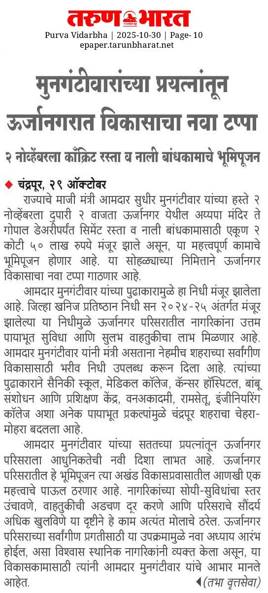 “भाग्यश्री”, गोलबाजार वॉर्ड, कस्तुरबा रोड, गिरनार चौक, चंद्रपूर – ४४२४०२