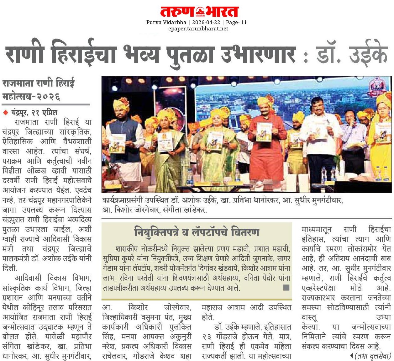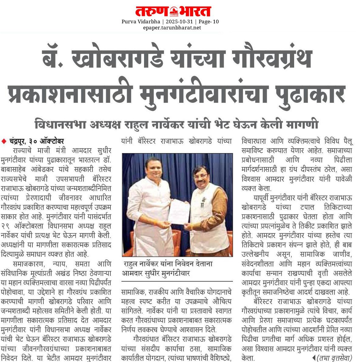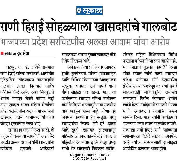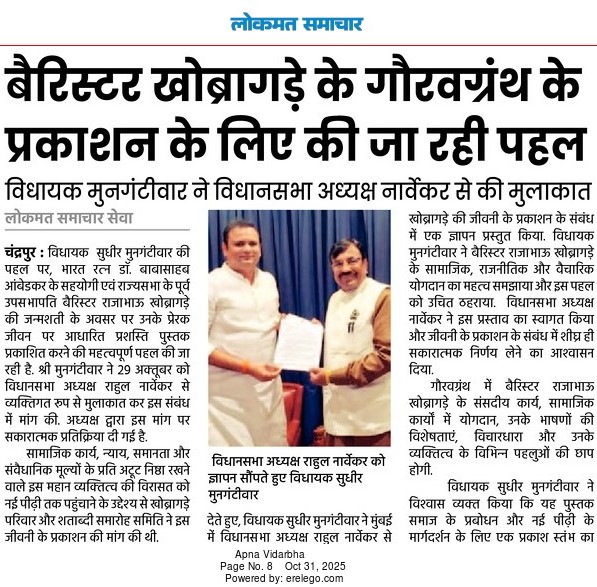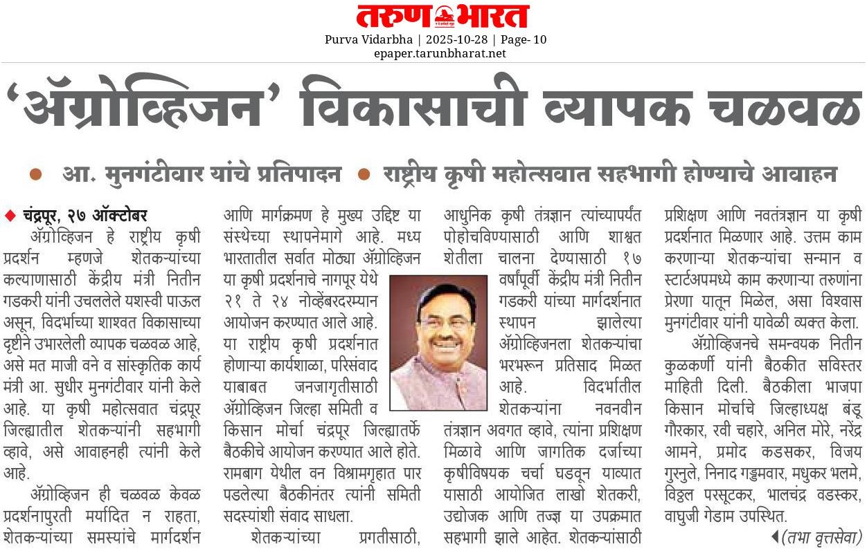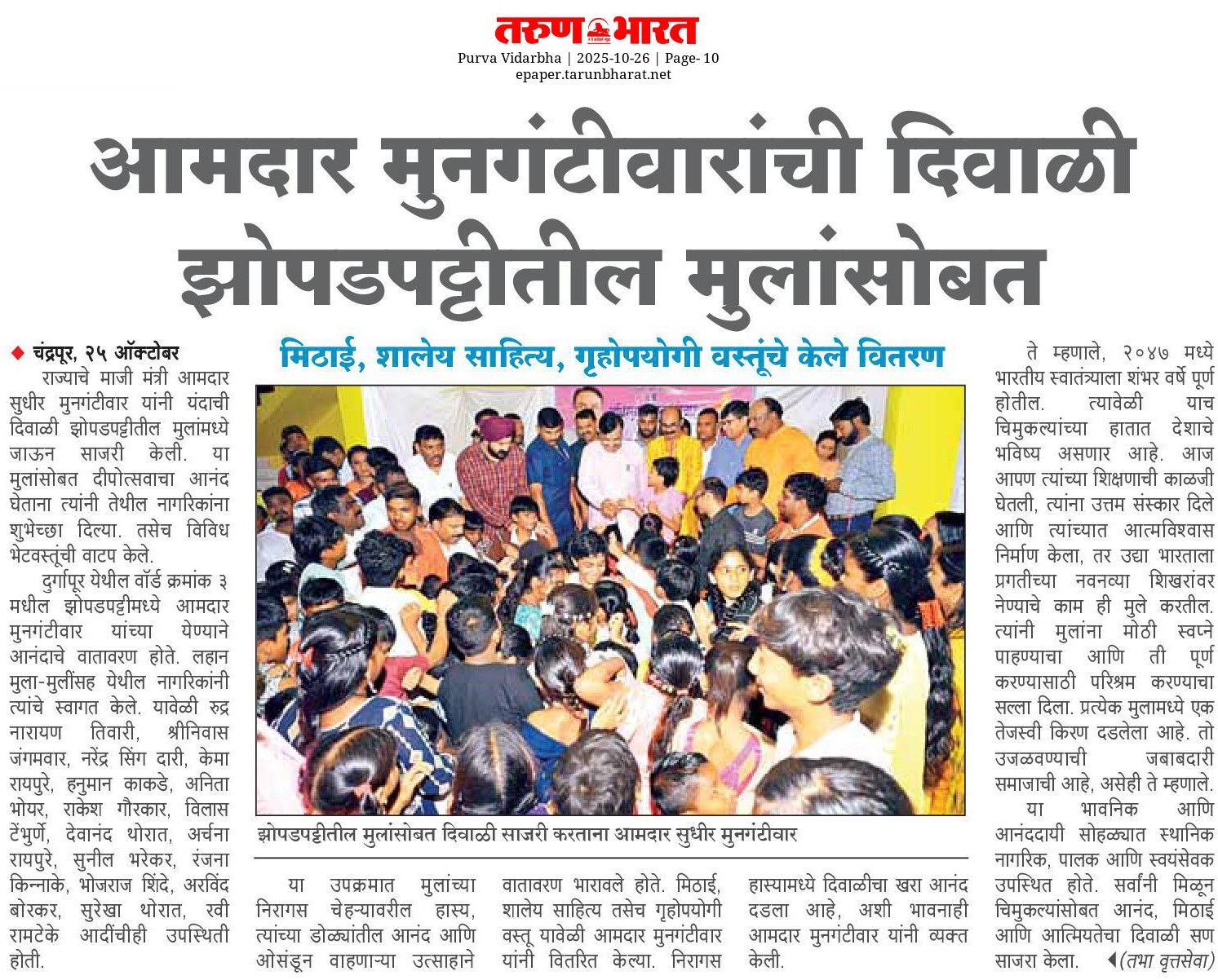 “भाग्यश्री”, गोलबाजार वॉर्ड, कस्तुरबा रोड, गिरनार चौक, चंद्रपूर – ४४२४०२