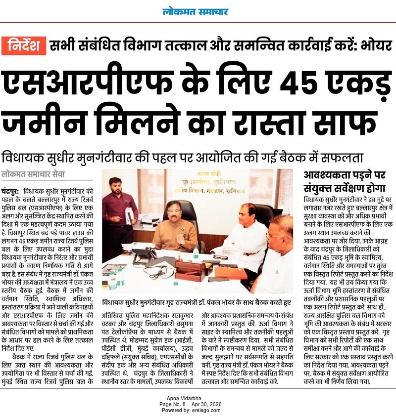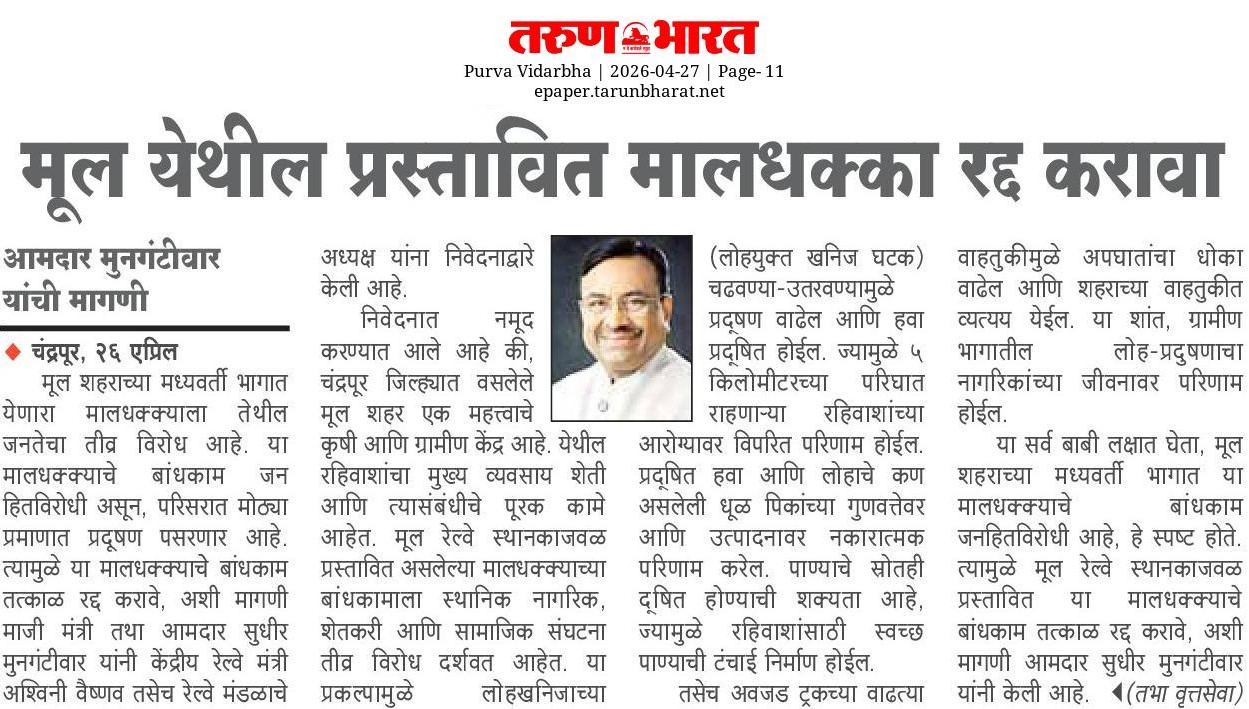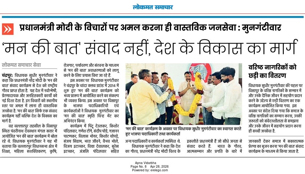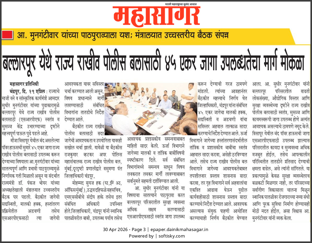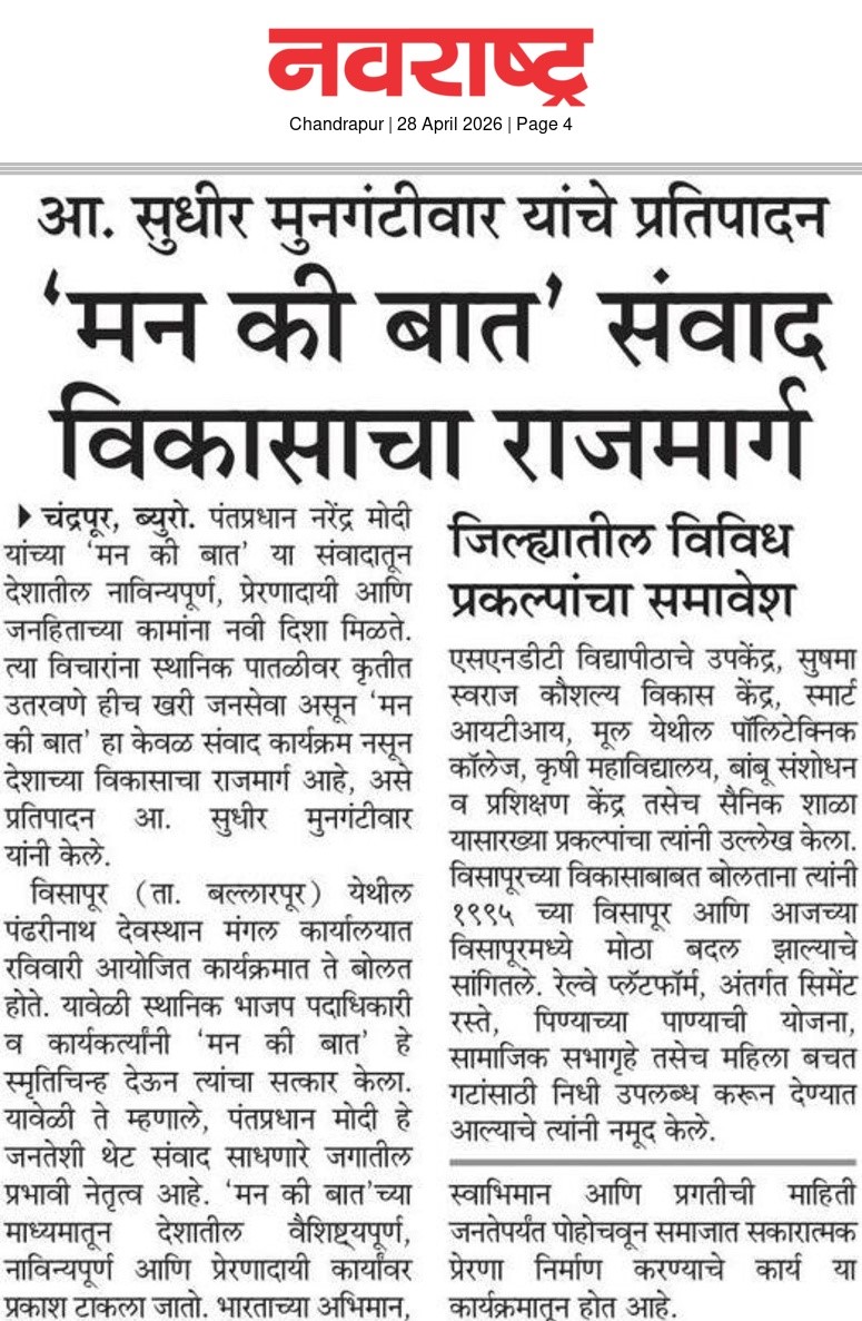 “भाग्यश्री”, गोलबाजार वॉर्ड, कस्तुरबा रोड, गिरनार चौक, चंद्रपूर – ४४२४०२